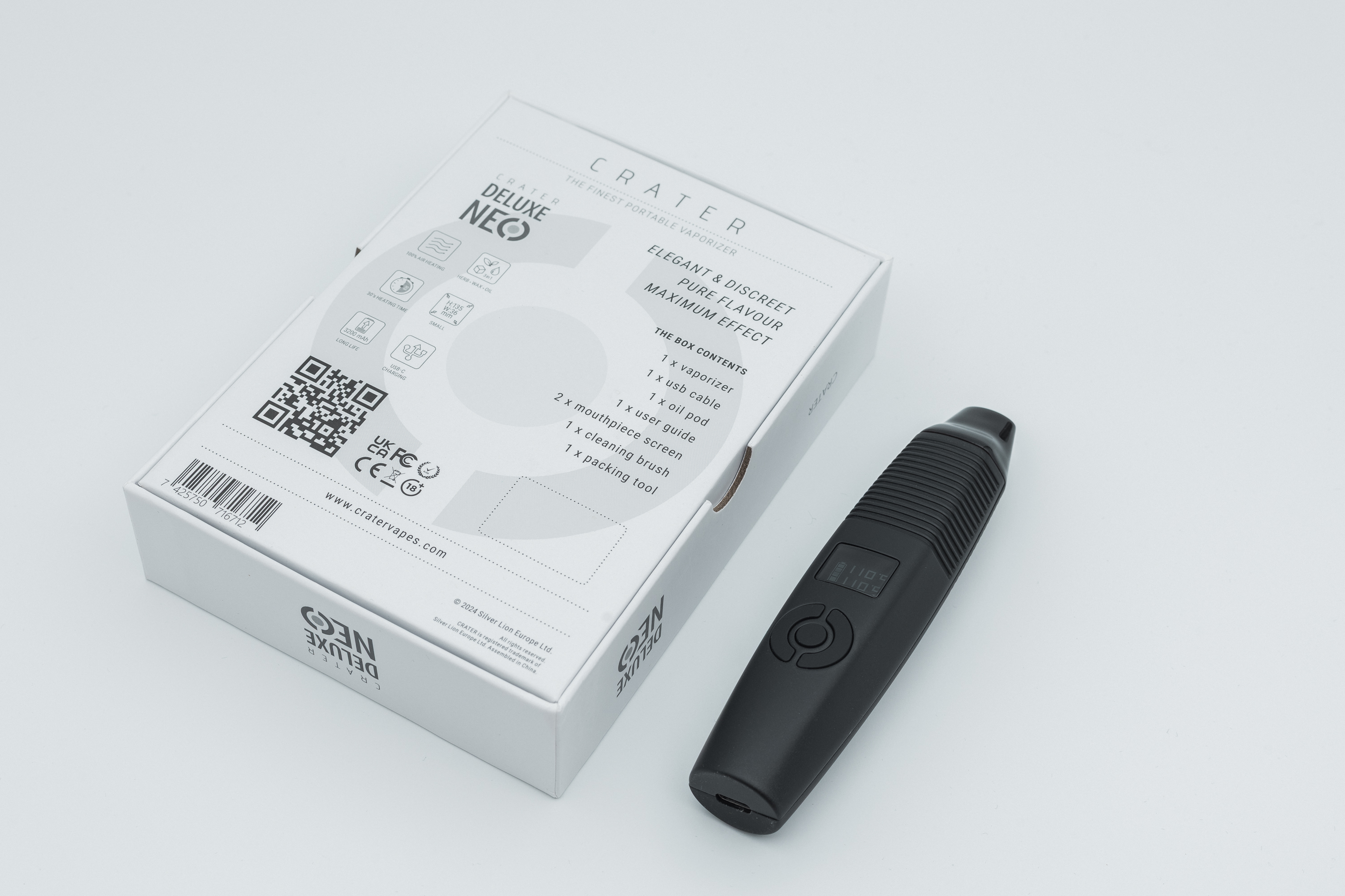 Meet the CRATER Deluxe NEO V2 — a premium, UK-designed dry herb vaporizer that blends advanced technology, refined performance, and everyday practicality. Certified to the highest international standards (CE, UKCA, RoHS, FCC), the 2025 Edition introduces USB-C charging, a zirconia mouthpiece with integrated air-cooling, stronger magnets, and vibration alerts—plus internal reliability upgrades for smoother ownership.
